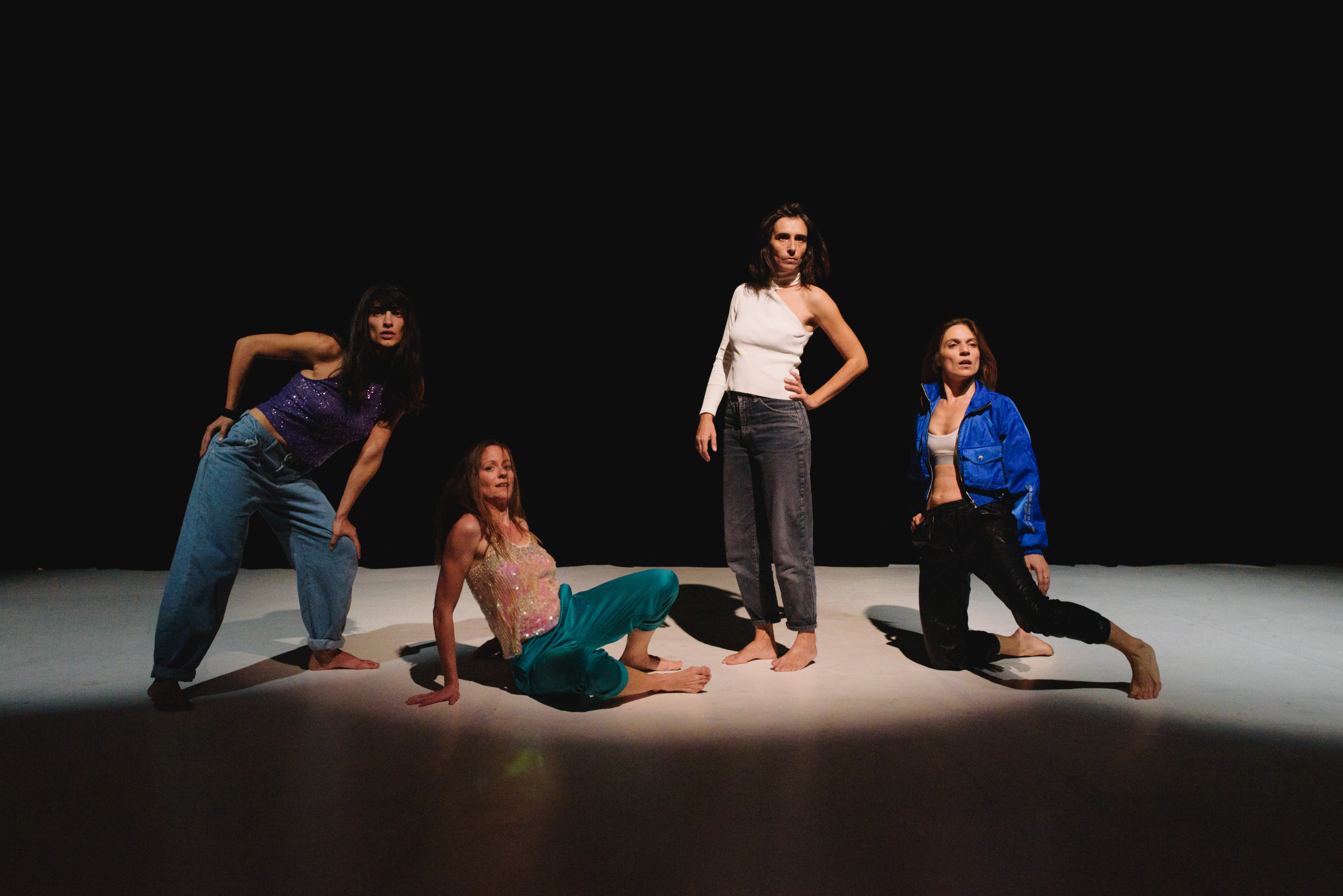In Evie Demetriou’s new group choreography, she gathered around her four dancers, four women, four friends, four mothers who don’t need ‘fountains of mojitos’ to share their intimacies with each other: how they experience their sexuality, their pregnancies, their changing bodies and the wide range of emotions these evoke from shame to pleasure; from silent awkwardness to extravert explosions of laughter; from timid self-explorations over sensual or assertive encounters to joyful celebrations of togetherness.